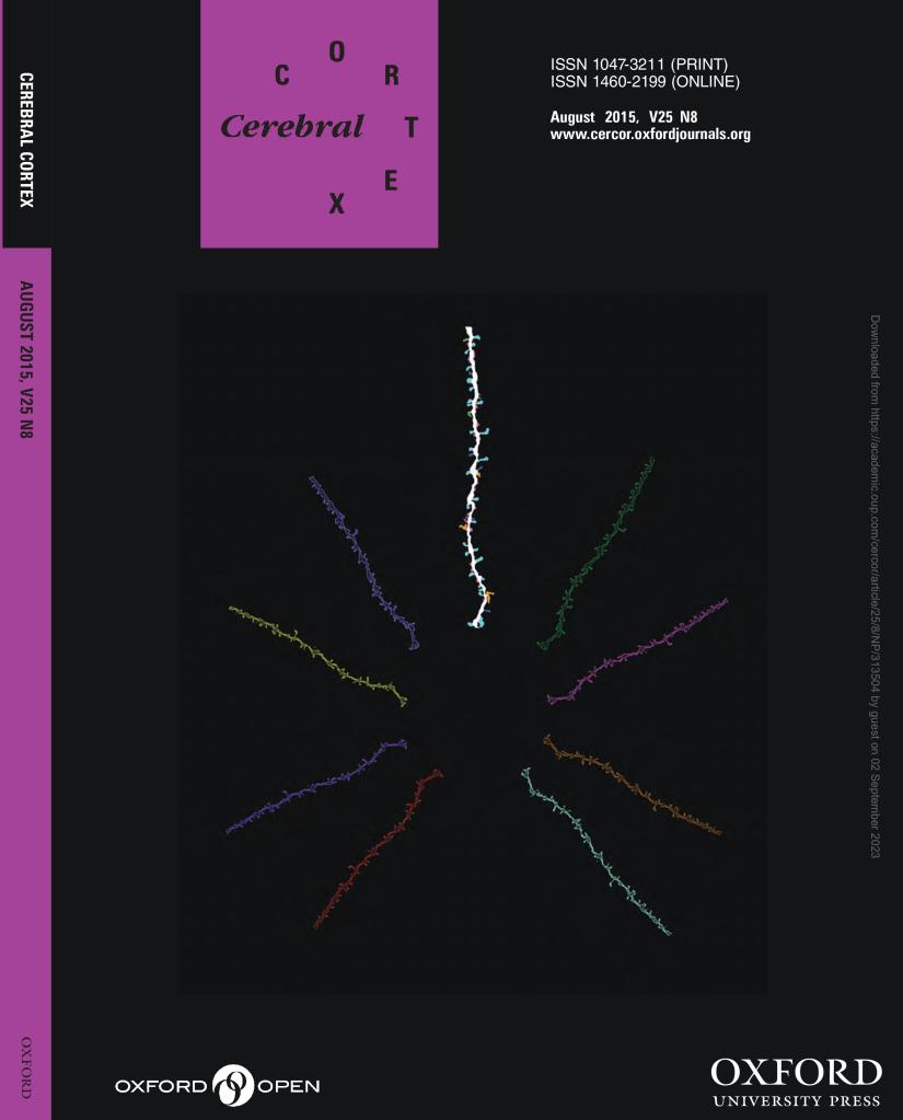 Above: Dendritic segment detailing different morphology of spines. Appeared as cover image at Cerebral Cortex (August 2015). See Chen et al., 2015.